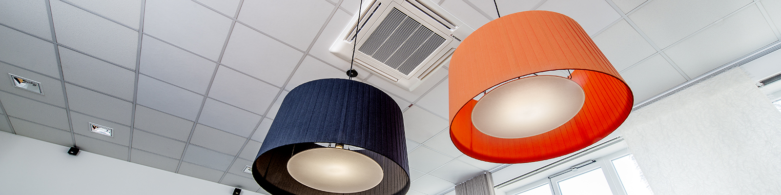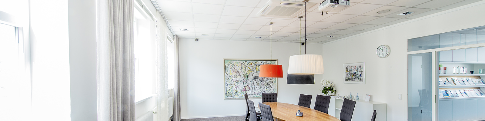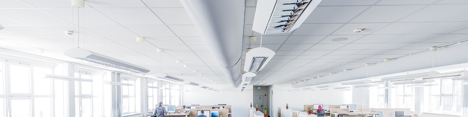 - Zugfreie Klimatisierung des Großraumbüros mittels textilem Luftverteilsystem und Zwischendeckengeräten. Für die Besprechungsräume, Büros und den Empfang wurden Deckenkassetten installiert.